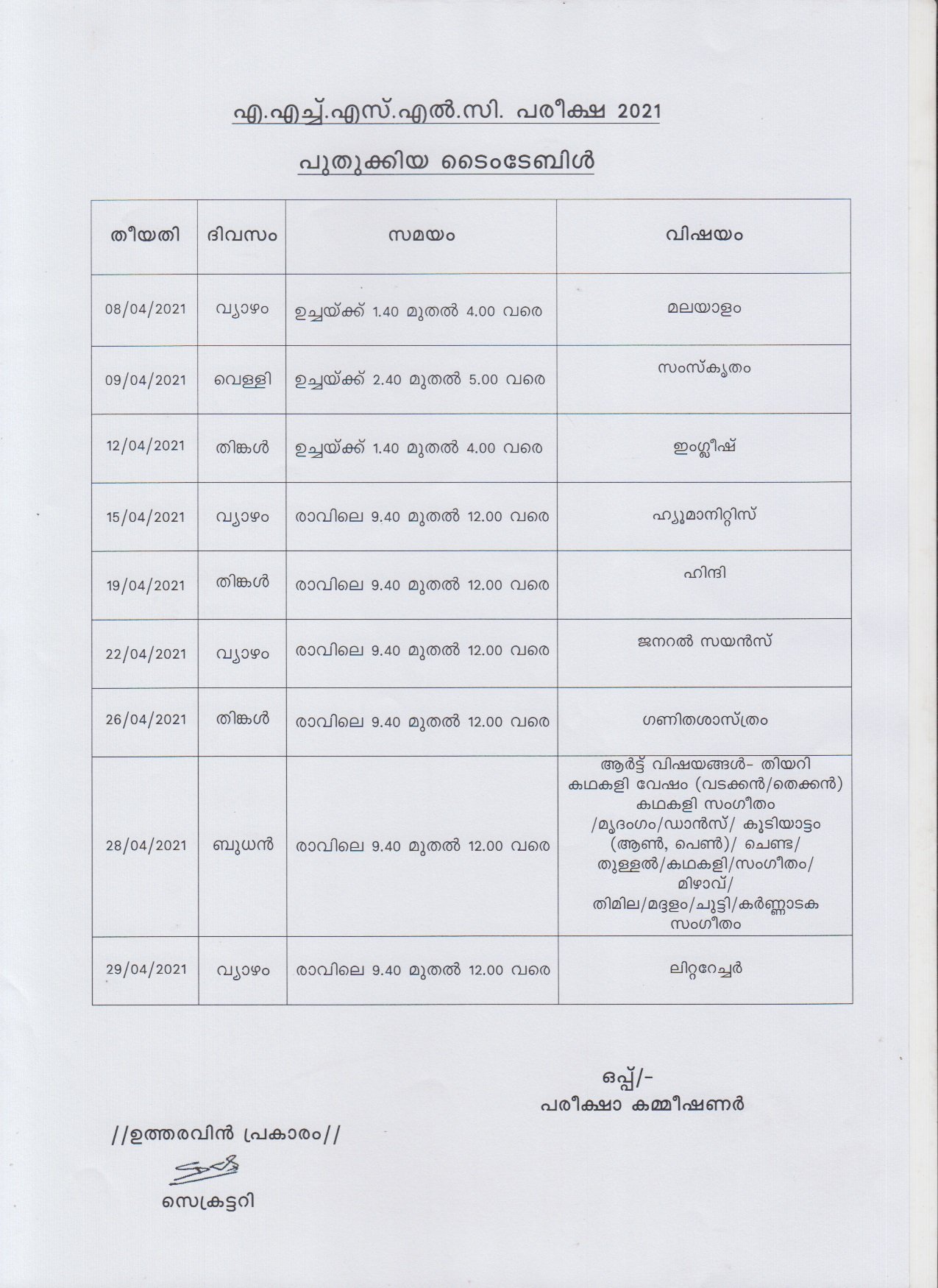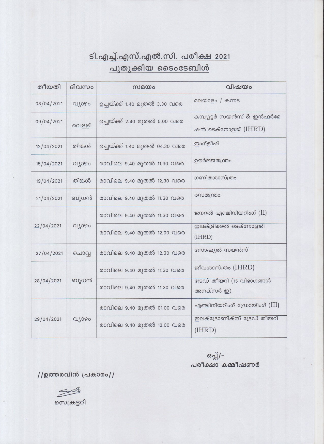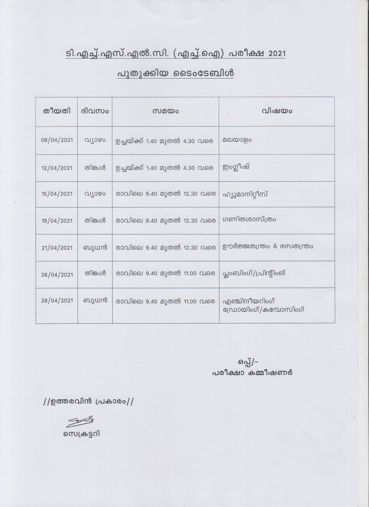ARABIC TEACHERS SUPPLIMENTARY EXAMINATION – NOVEMBER 2020 - TIME TABLE